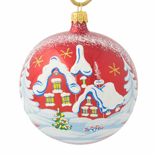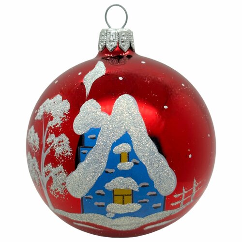 Елочка Стеклянный елочный шар Снежный пейзаж 9 см красный С 1454