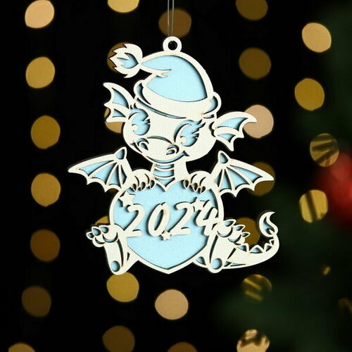 Ёлочная игрушка "Дракон 2024", дерево, двухслойный, голубой