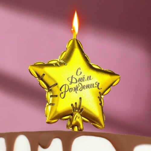 Свеча в торт на шпажке "Воздушный шарик. Звезда", 10 см, золотая