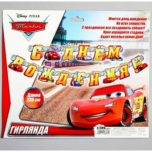 Гирлянда на люверсах "С Днем рождения!" Тачки, дл. 235 см