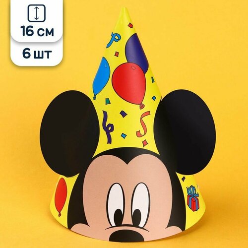 Праздничные колпаки картонные с ушками, Микки Маус, 16 см, 6 шт.