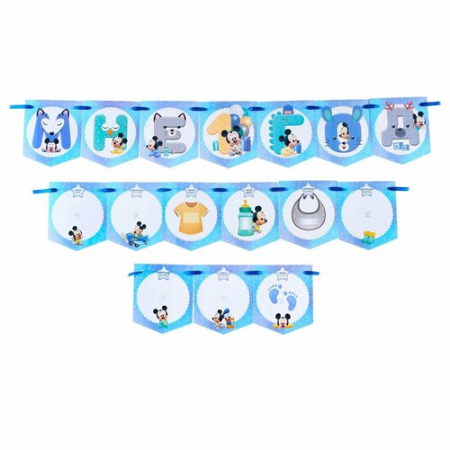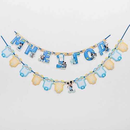 Гирлянда на ленте с 12 карточками для фото "Мне 1 год", Микки Маус и друзья