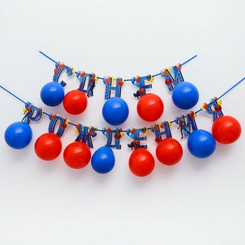 Гирлянда на ленте с воздушными шарами "С Днем Рождения!", Человек-паук