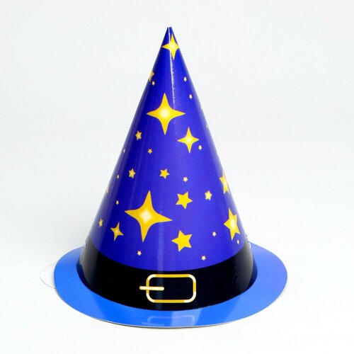 Колпак бумажный С днeм рождения, звeзды, набор 6 шт, 16 см