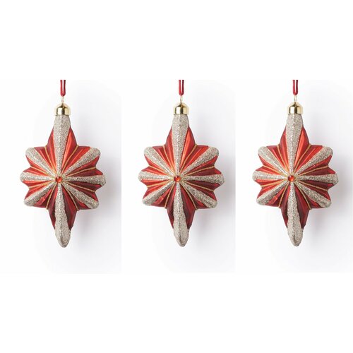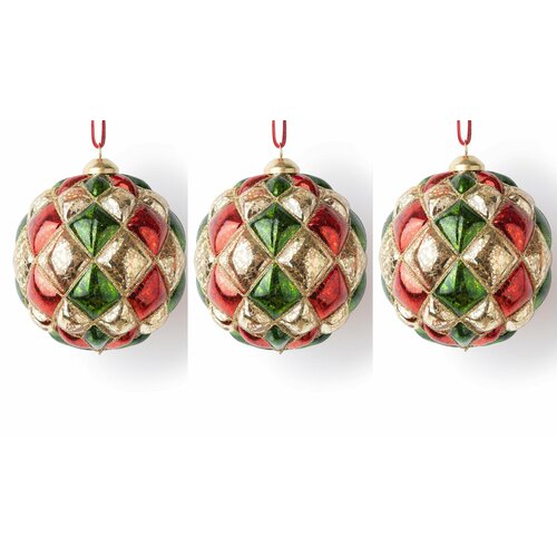 15428 Набор из 3-х золотых шаров с красно-зелеными ромбами 10 см Karlsbach