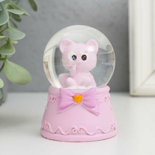Стеклянный новогодний снежный шар свет "Сказочный котик" 4х4х6,7 см
