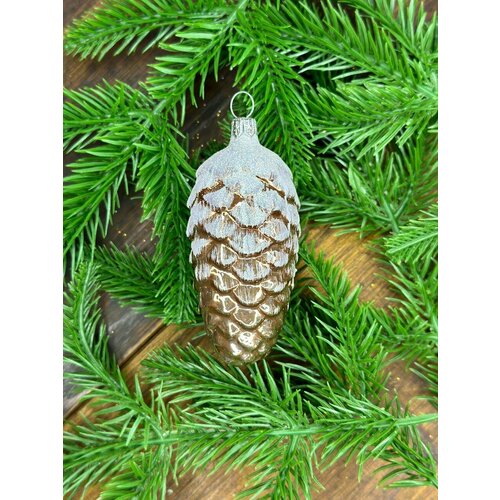 Елочное украшение 1шт "Шишка в снегу", 9 см, стекло