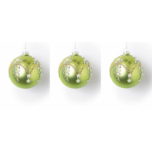 14434 Набор из 3-х зеленых шаров с цветами 8 см Karlsbach