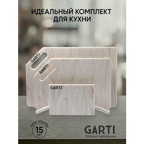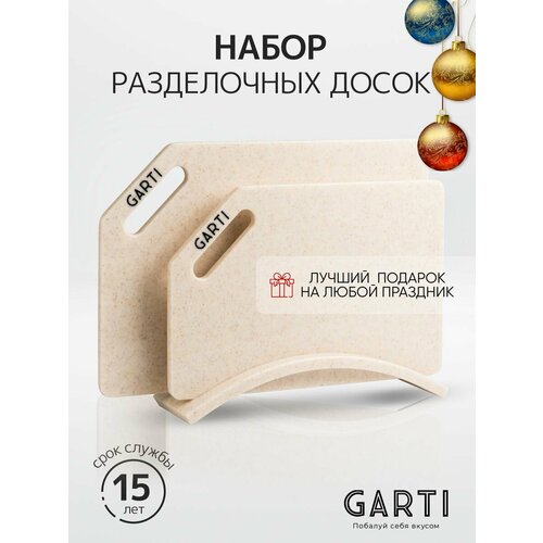 Garti Комплект из двух разделочных досок на подставке и мини доска цвет светло-коричневый материал искусственный камень размер 36*24 см, 30*20 см, 17*12,5 см Solid. surface