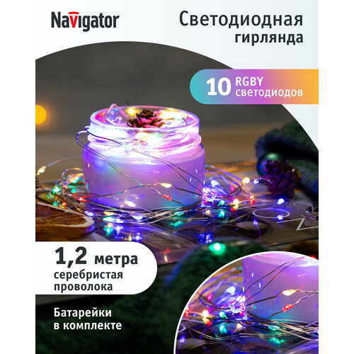 Гирлянда Navigator нить NGF-S01-50RGBY-5-3m-3AA-TR-IP20, 1 шт. в наборе, 3 х 3 х 0.01 м, 0.01 х 3 м, 50 ламп, разноцветный/прозрачный провoд