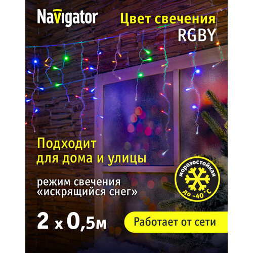 Гирлянда «Бахрома» Navigator 93 644, искрящийся снег, разноцветный свет, 2*0.5 м, IP44