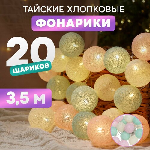 Гирлянда NEON-NIGHT Тайские фонарики, 303-078, 1 шт. в наборе, 3.5 х 0.06 м, 20 ламп, перламутр