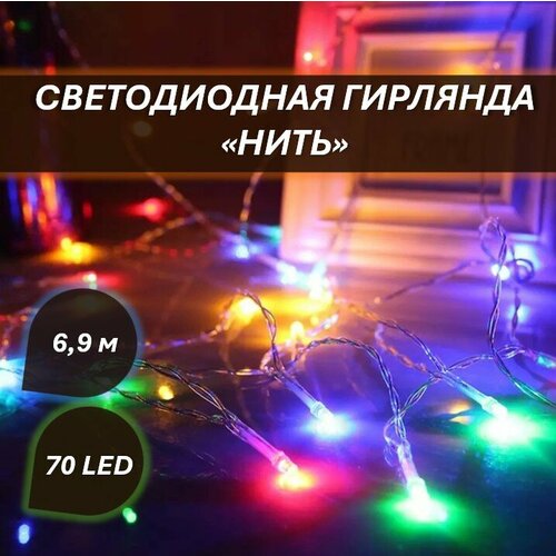 Светодиодная гирлянда "Нить" 70 led 690 см, цветная
