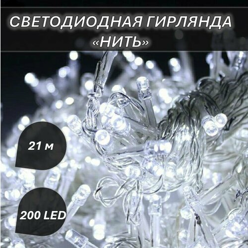 Светодиодная гирлянда "Нить" 21 метр 200 led, белого цвета