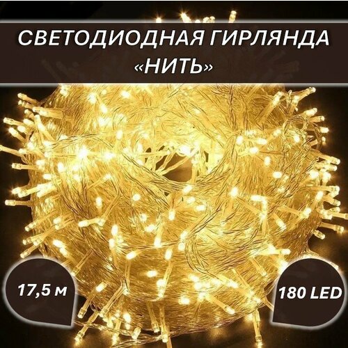 Светодиодная гирлянда "Нить" 17,5 метров 180 Led, тёплого оттенка