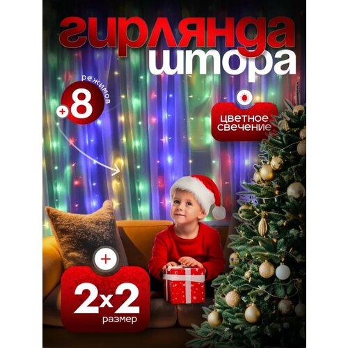 Гирлянда-штора на окно от бренда "KosmoStore" 2x2 метра, разноцветная