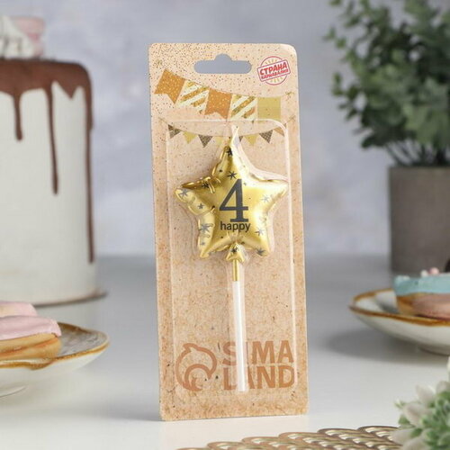 Свеча в торт на шпажке "Воздушный шарик. Звезда", цифра 4, 5.5 см, золотая