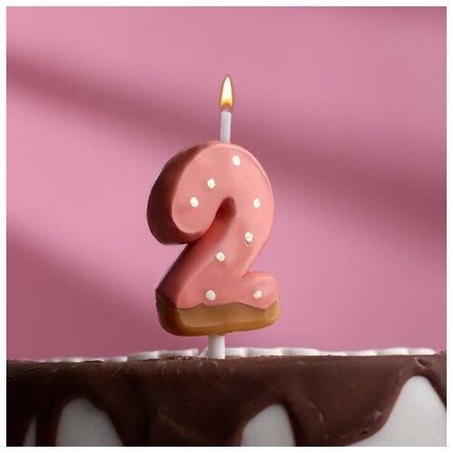 Свеча в торт "Клубничная глазурь", цифра "2", розовая
