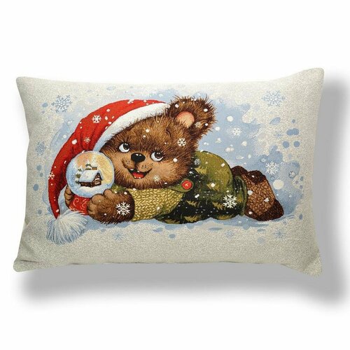 Наволочка новогодняя декоративная / интерьерная на подушку Мишка Дед Мороз. 45х63 см гобелен