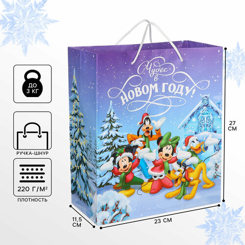 Пакет ламинат вертикальный, "Чудес в Новом году", 23 x 27 x 11,5 см, Микки и его друзья