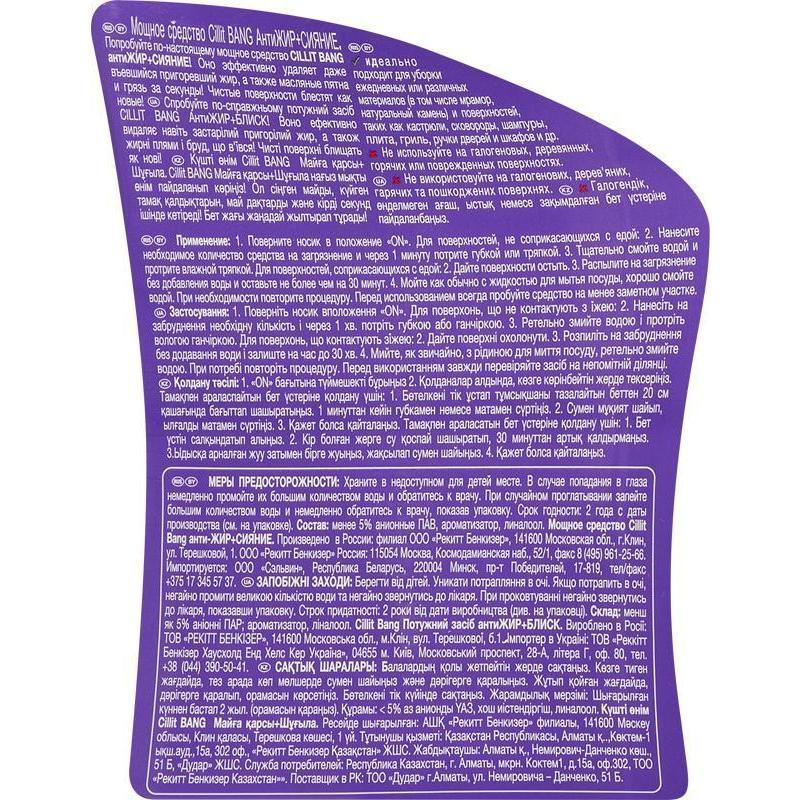 Чистящее средство универсальное Cillit Bang Антижир+Сияние распылитель 750мл (3018799) 8шт 100058756938