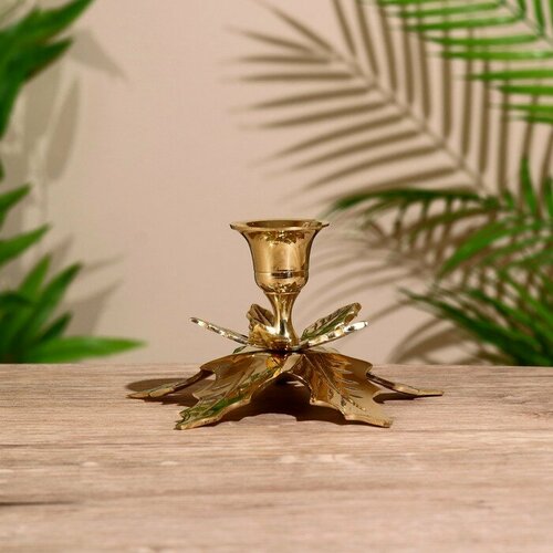 Подсвечник металл, стекло на 1 свечу "Золотые листики" d-5 см 8х12х16,5 см
