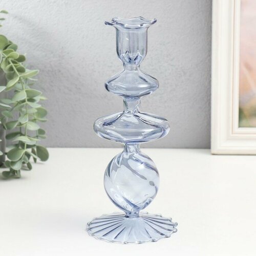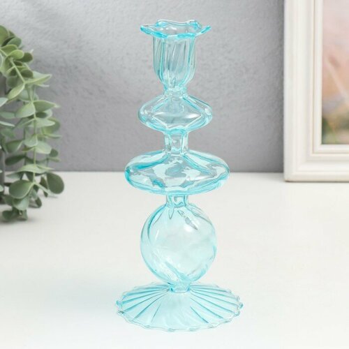 Подсвечник стекло на 1 свечу "Волна" прозрачный голубой 8х8х21 см