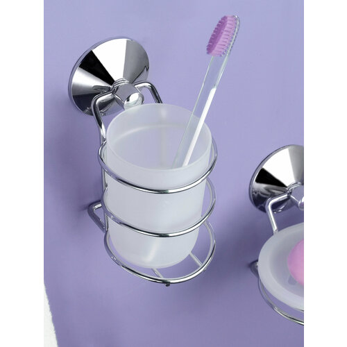 Стакан настенный для зубных щеток с вакуумной системой крепления 8х14,5х11 см Reаl