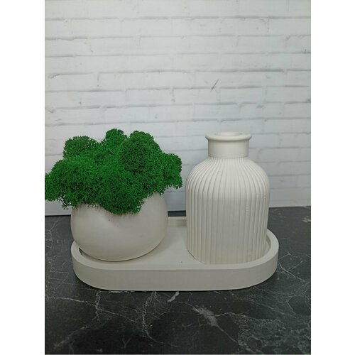 Кашпо со мхом (2 шт.) + поднос