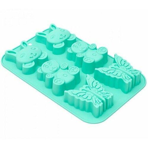 Форма для выпечки силикон 6 ячеек заяц, мишка, бабочка 25,5*17*3 см