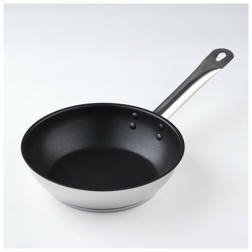 Сковорода «Общепит», d=22 см, толщина корпуса 0,6 мм, дно 3,5 мм, с теплораспределителшьным слоем, антипригарное покрытие, индукция, цвет металлик