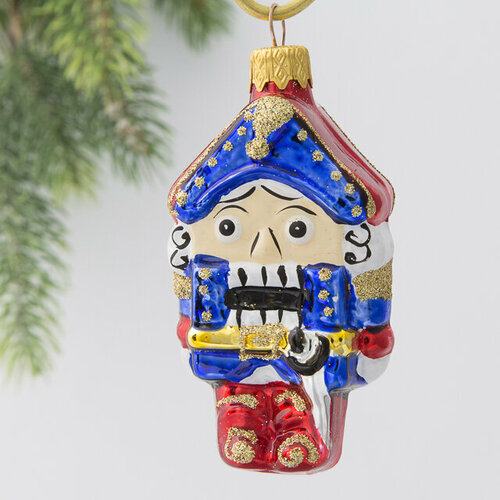 Коломеев Стеклянная елочная игрушка Щелкунчик - Сказочный принц 9 см синий, подвеска ФУ-526