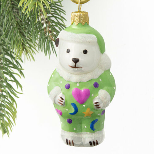 Коломеев Стеклянная елочная игрушка Мишка в пижаме 11 см салатовая, подвеска ФУ-596