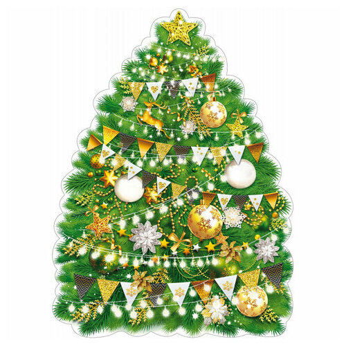 Плакат фигурный "С Новым Годом!" Дед Мороз и тройка коней, 25 х 25 см./В упаковке шт: 1