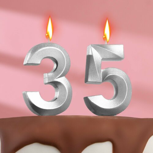 Свеча в торт юбилейная "Грань", цифра 35 / 53, серебряный металлик, 6,5 см