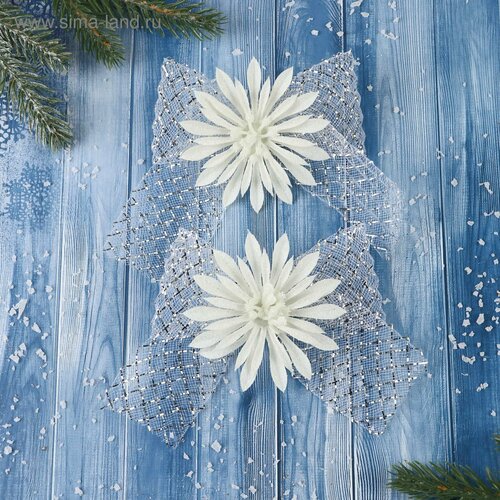 Украшение ёлочное "Бантик с астрой" 11х9 см, белый