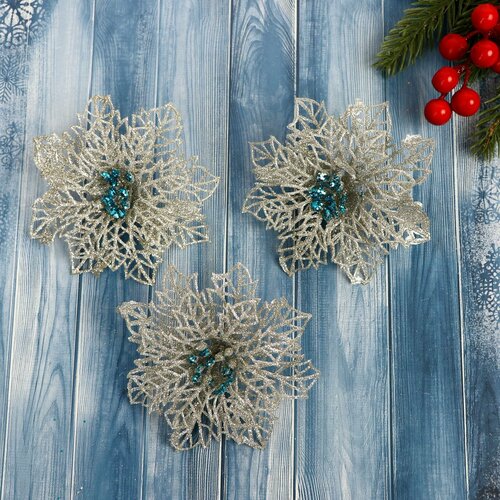 Украшение ёлочное "Ажурный цветок" 10,5 см, серебро