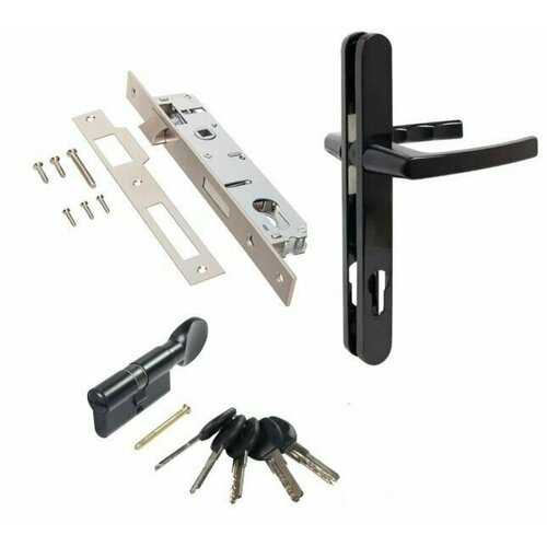 В комплект входит:1. Замок врезной . Апекс 7300-20-NIS. Межосевое расстояние - 85мм. Удаление ключевого отверстия - 20мм. Ширина планки - 23мм. Вылет ригеля - 15мм. Комплектация: ответная планка, крепёж.2. Цилиндровый механизм Ajax (A