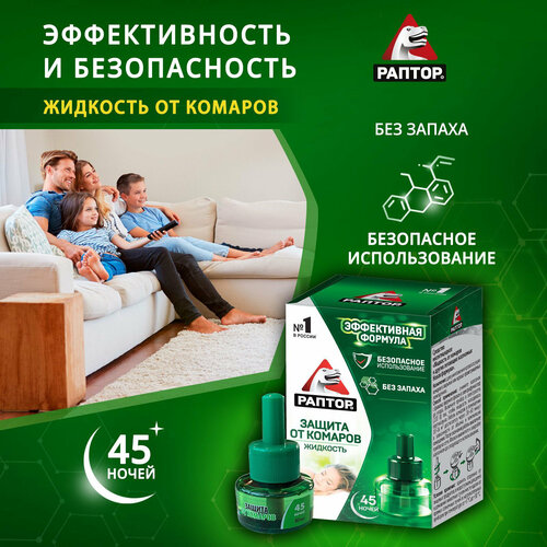 Жидкость для фумигатора от комаров, без запаха, Раптор, 45 ночей, 1 шт