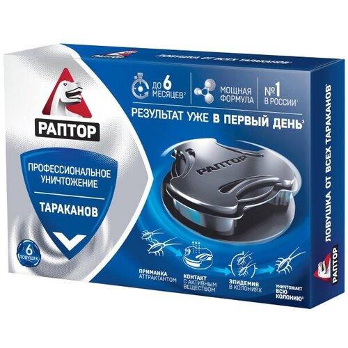 Средство от насекомых Раптор от тараканов, 6 ловушек