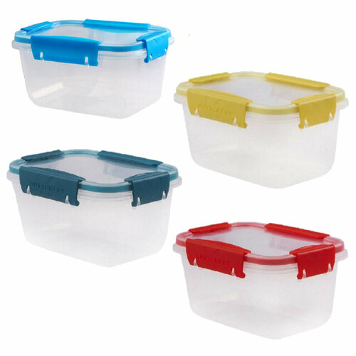 Контейнер для продуктов Butterfly 0,5 л, 11,2х15,6х5,8 см, прямоугольный, 4 замка, пластик микс цвета 1 шт. желтый, красный, синий, бесцветный, зеленый