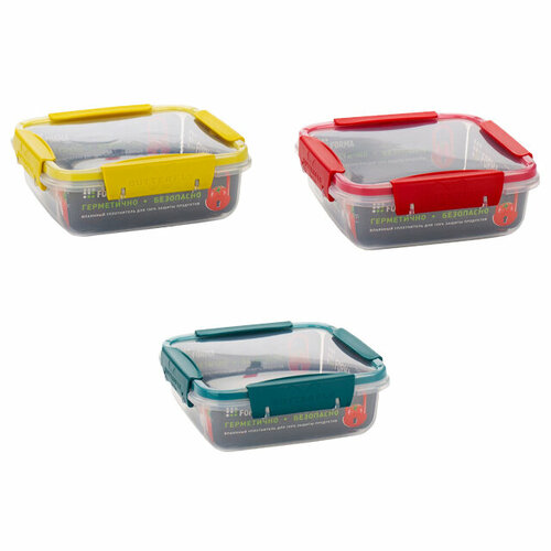 Контейнер для продуктов Butterfly, 0,8 л, 15,6х15,6х5,8 см, квадратный, 4 замка, пластик микс цвета 1 шт. желтый, красный, синий, бесцветный