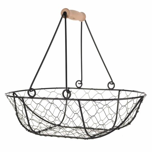 Корзина для хранения, 29х19х8 см, с ручкой, металл/дерево, овальная, черная, Соты, Gardening