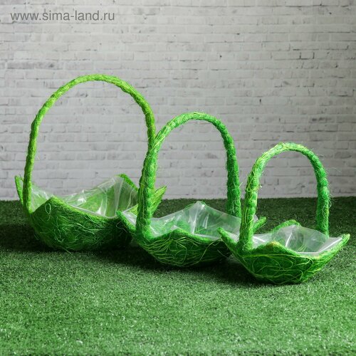 Набор корзин «Полянка», 3 шт, 25×11/32 см, 20×10/28 см, 17×9/23 см, ротанг, сизаль