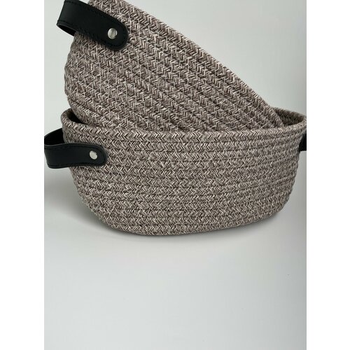 Комплект из 2 корзин из джута, с кожаными ручками для хранения