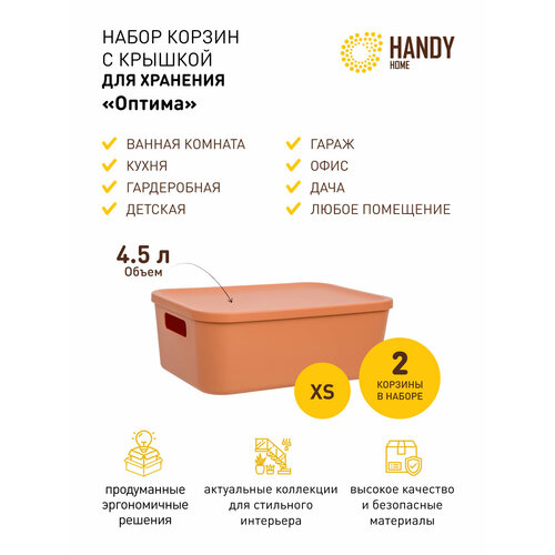 Набор 2 шт. корзина пластиковая с крышкой Handy Home 4,5 л