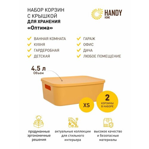 Набор 2 шт. корзина пластиковая с крышкой Handy Home 4,5 л, желтый