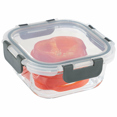Контейнер, Praktisch, объем: 500 мл, из жаропрочного стекла с пластик крышкой со съёмными защёлками бесцветный, серый