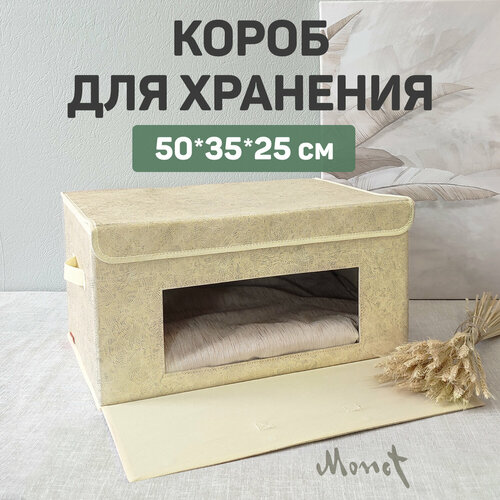 Коробка для хранения вещей с крышкой, короб для хранения стеллажный, корзина, ящик с откидной стенкой, 50*35*25 см, MONET SUMMER
