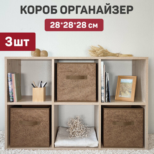 Коробки для хранения вещей, короб для хранения стеллажный, ящик, корзина, набор 3 шт, 28*28*28 см, MONET AUTUMN